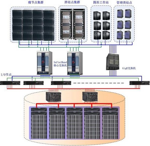 6神威Cluster是在匯集神威MPP機的技術優(yōu)點基礎上,專門為科學和工程計算領域設計開發(fā)的高性能計算平臺。在氣候氣象、海洋環(huán)境、數(shù)值風洞、碰撞仿真、蛋白質折疊、基因研究、新藥研發(fā)、分子動力學模擬、量子化學計算、材料科學、芯片設計、動漫設計、工業(yè)設計等方面用途廣泛。神威Cluster系統(tǒng)的通用結構如下圖:
